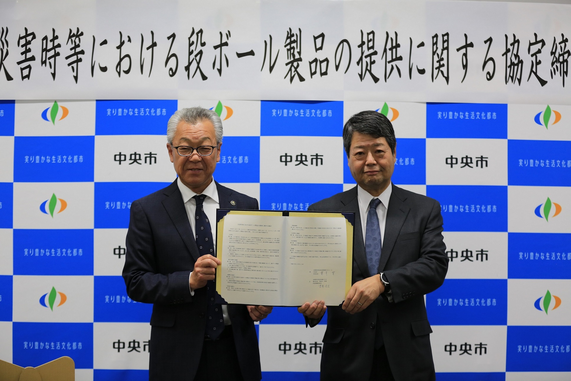 先日、中央市と災害時等における段ボール製品の提供に関する協定を結びました。